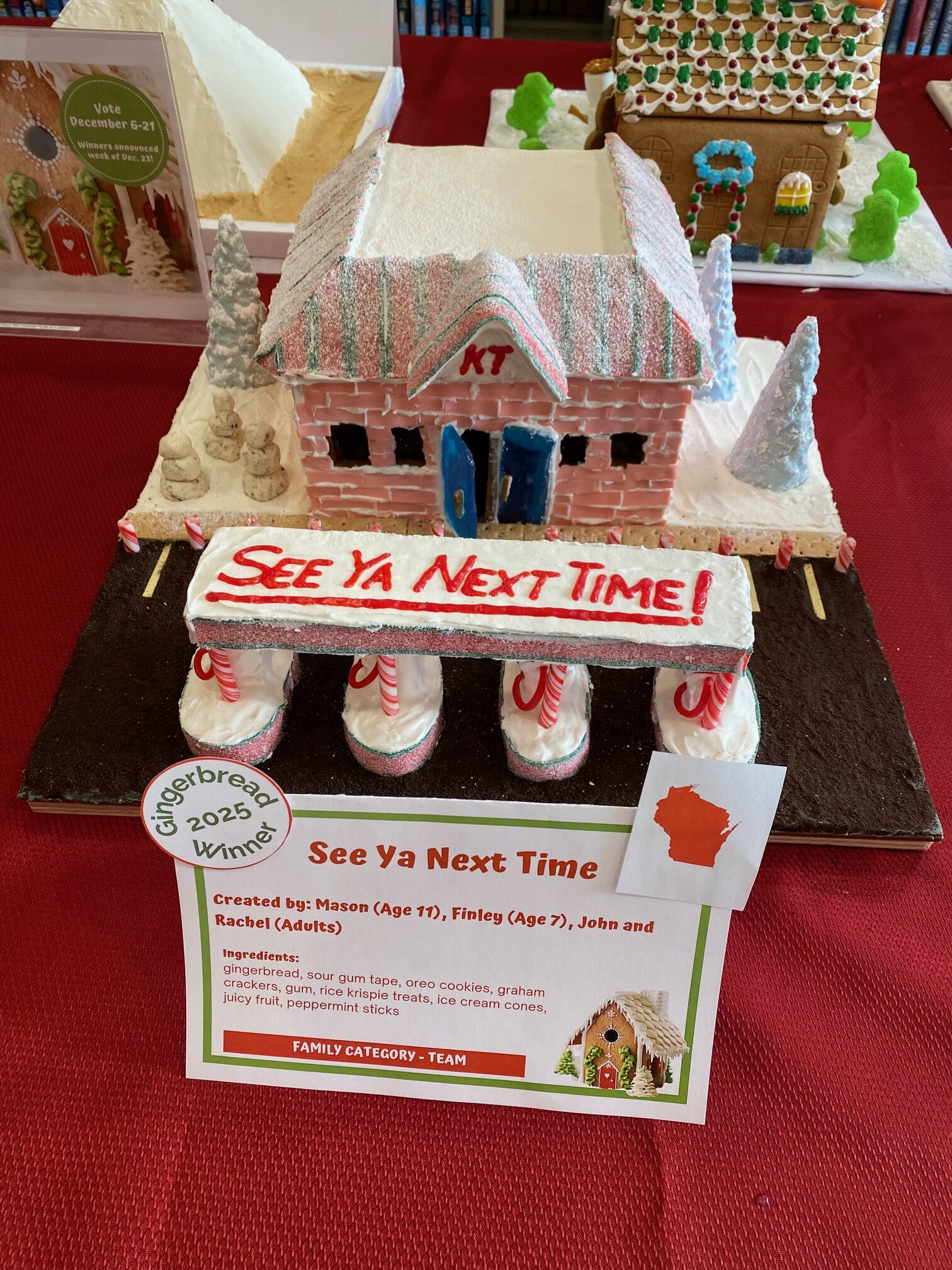 ● Winners will receive a Pauline Haass Public Library 2025 Gingerbread Contest ornament and King Arthur Baking gift card. Winners of the “Wisconsin” category will receive a Kwik Trip gift card and a 2025 Gingerbread Contest ornament.
