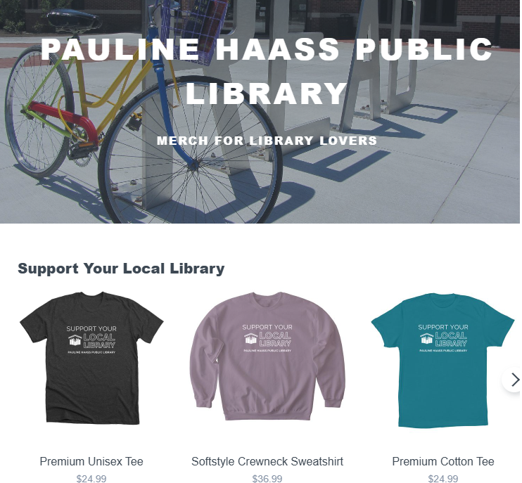 Shop for Library Merch: Purchase library-themed shirts, sweatshirts, tote bags, and